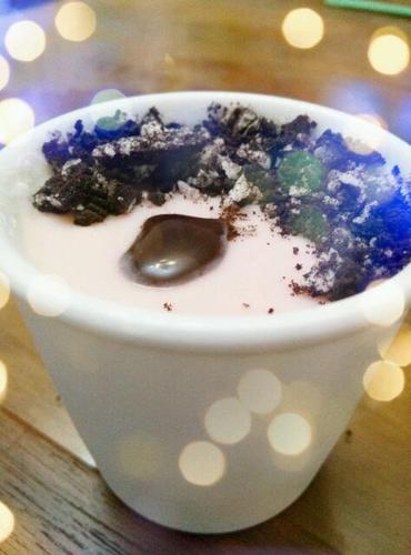 步骤8、 然后将奥利奥切碎,放到上面,再淋上巧克力酱。这样美味的黑森林就做好了。超级好吃哦!