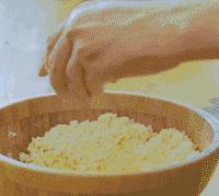 步骤1、 大碗里倒入低筋面粉、软化的无盐黄油、盐,用刮刀切拌成细小颗粒