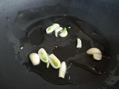 步骤7、炒锅中倒少许油,烧热后爆香蒜片。