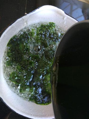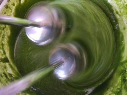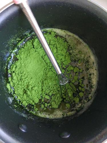 步骤3、 加入10克抹茶粉,用小蛋抽搅匀。