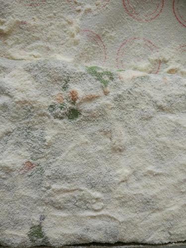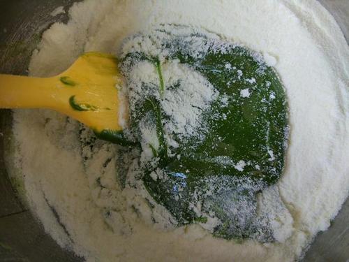 步骤10、 加入奶粉,用刮刀翻拌均匀。