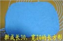 步骤6、 面团擀成长约30厘米、宽约20厘米的长方形