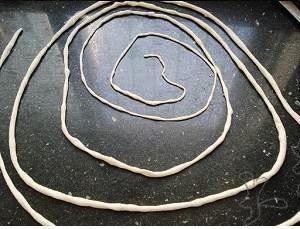 步骤3、边搓边盘起来,面与面之前不要粘到了