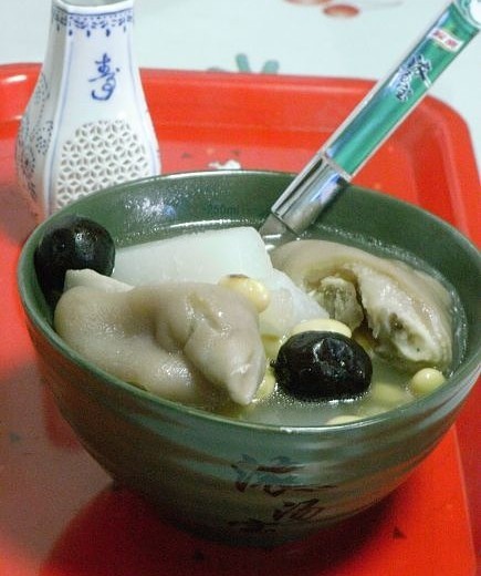 食材三只猪爪,一根萝卜,三两黄豆,八粒红栆