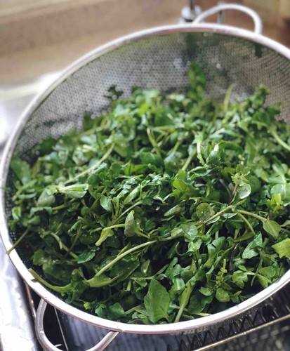 步骤5、鲜嫩的荠菜洗干净,根部摘掉不要,别看这么多,一焯水就缩缩成一点了
