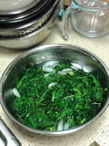 步骤6、水烧开放点盐,荠菜放进去几秒钟捞出来