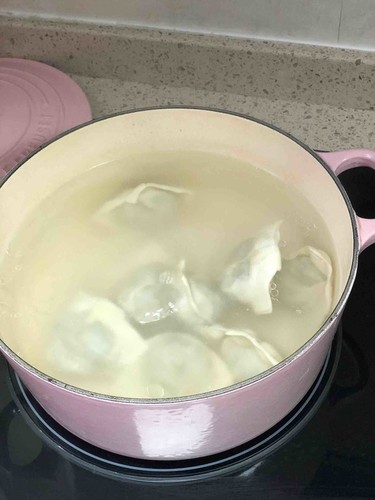 步骤14、水开放入馄饨,等馄饨都浮上来再加一次水,再煮开就好啦,捞出来放上芝麻酱醋等等,就完成啦