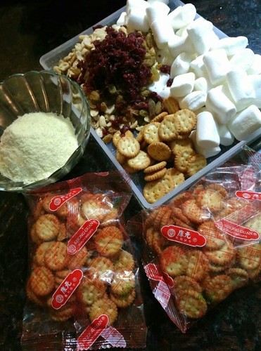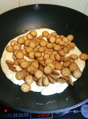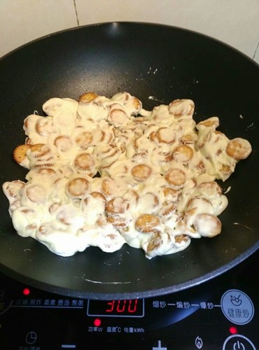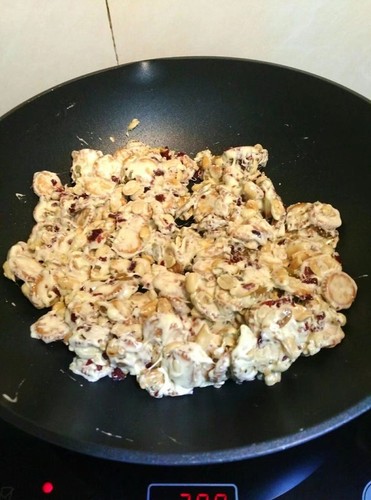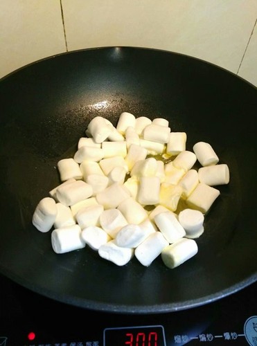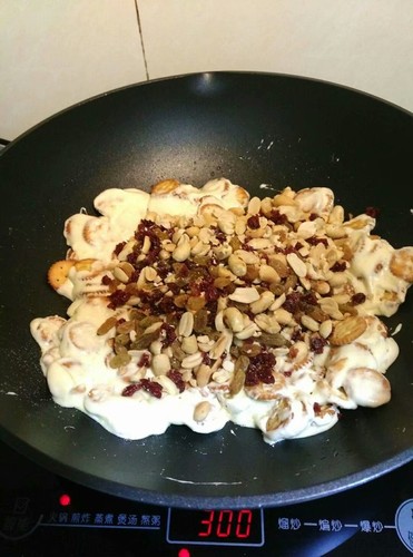 步骤8、炒匀,使每块饼干都粘上棉花糖