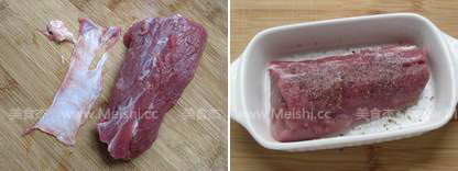 猪里脊洗净,去掉面上的筋膜和肥肉,用少许盐和胡椒粉腌制30分钟