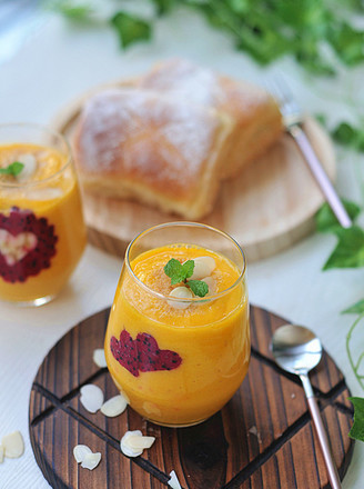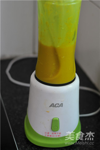 步骤4、芒果取肉,加适量酸奶放入搅拌机搅拌成泥