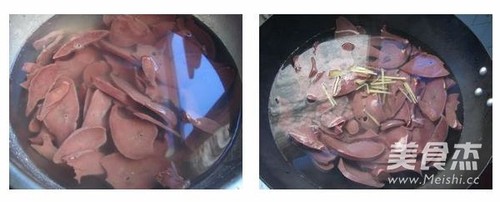步骤6、水中放黄酒和姜丝再焯烫一遍,捞出备用