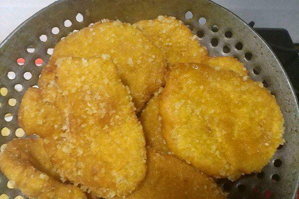 步骤4、 弄大小差不多的起子,揉圆拍扁,沾上面包糠
