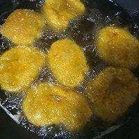 步骤5、 锅里放油烧热,下锅炸之浮起,(注意下锅之后,马上用筷子夹起所有的南瓜饼,反一面,以免都沾到一起去了)