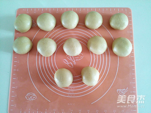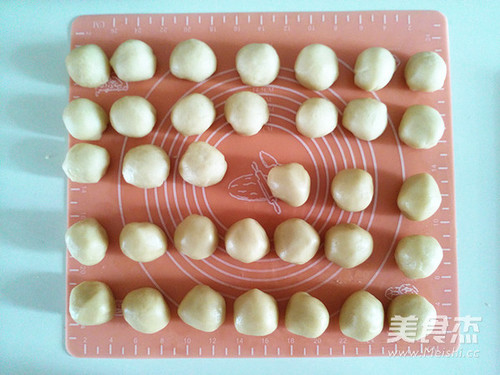 步骤6、豆沙馅每颗25克揉圆备用,不加咸蛋黄的豆沙馅是每颗30克。如果包入一整颗咸蛋黄就把豆沙馅揉成每颗20克。
