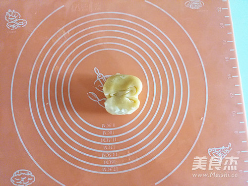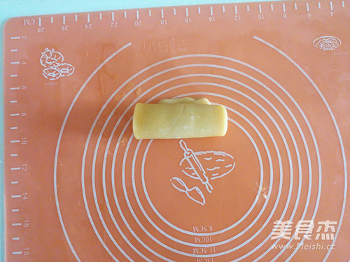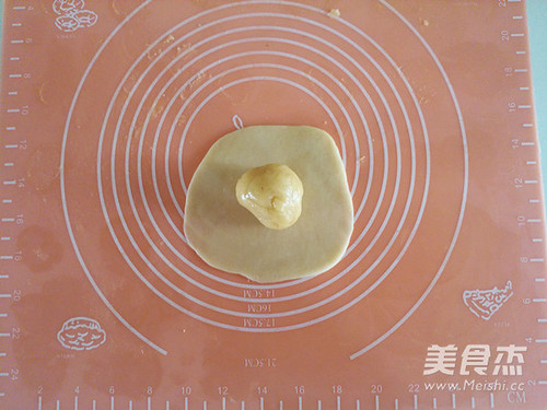 步骤9、将水油皮擀开,无需擀的很薄;然后中间放入一个油酥。