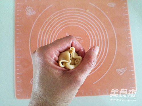 步骤10、用虎口包紧,把油酥包裹在里面。
