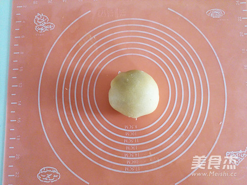 步骤4、面团揉至6-7分钟,均匀光滑即可取出,油酥同样的低筋粉也是过筛后放入面包机里启动揉面模式拌均匀后取出,盖上保鲜膜静置30分钟。