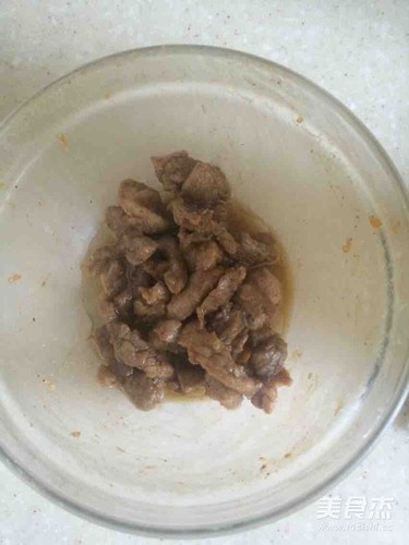 步骤1、用生抽,胡椒粉,淀粉腌肉,淀粉抓匀。腌制15分钟左右。