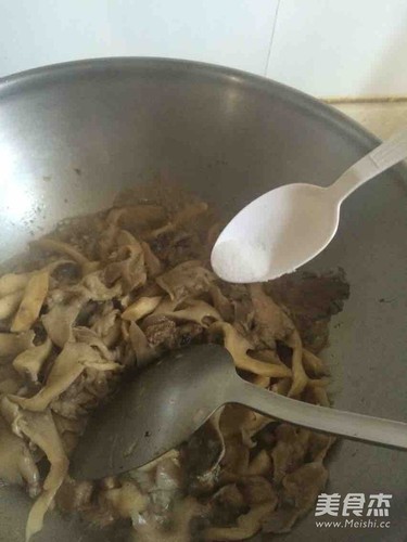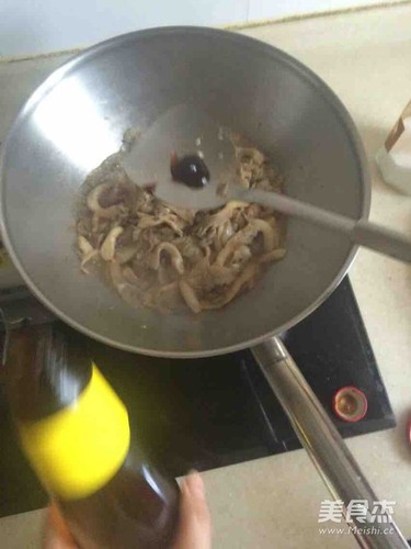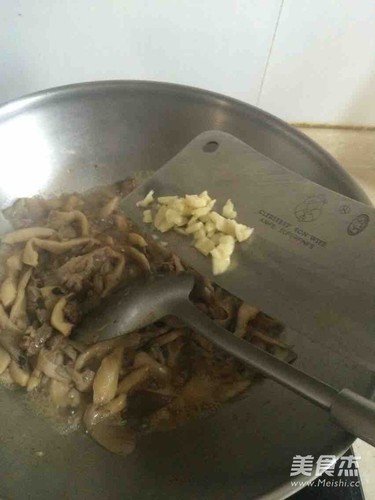 步骤6、下蘑菇。下蘑菇前把水挤干净,不然油会涧的到处都是。