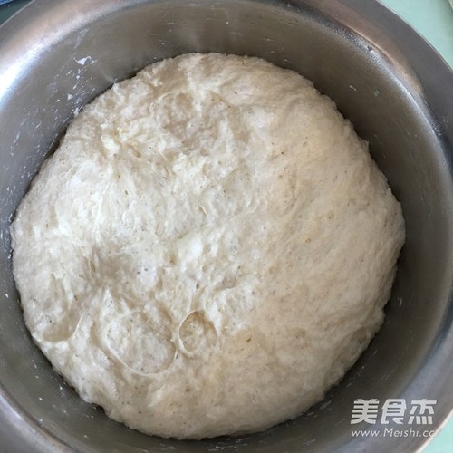 步骤4、放到温暖处进行发酵,我是室温发酵3小时左右,室温25度左右。面团发酵至膨胀后回落。