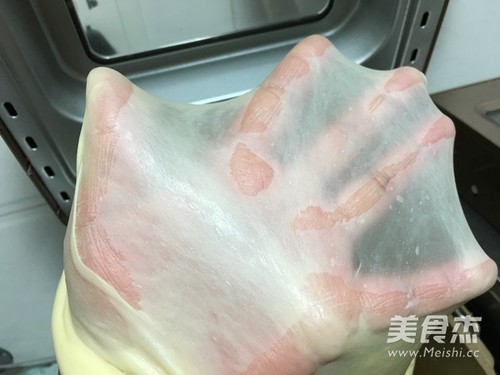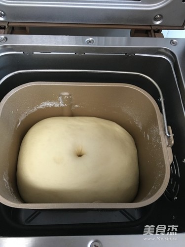 步骤8、利用面包机发酵功能,将揉好的面团进行发酵30分钟,这是发酵好的面团状态。