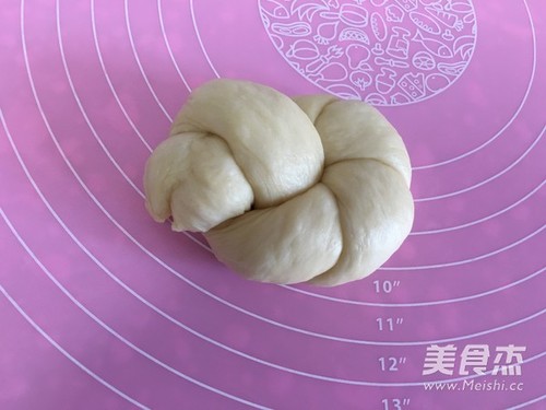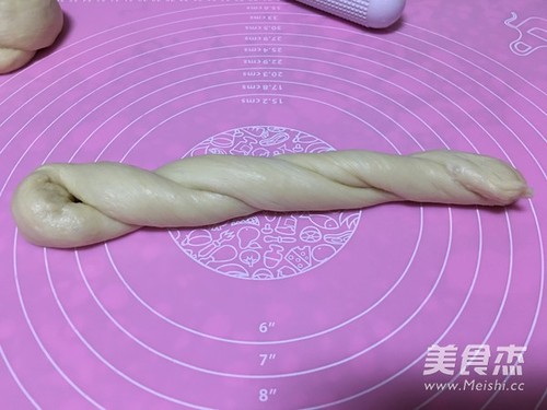 步骤10、将面团两头相接,左手固定住对折的地方,右手搓几圈。