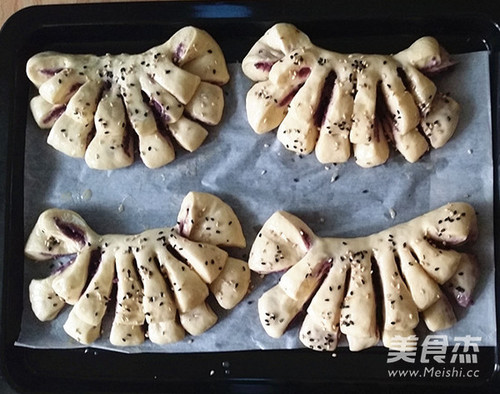 步骤14、发至2倍大时到出,表面刷层全部液,撒上黑白芝麻