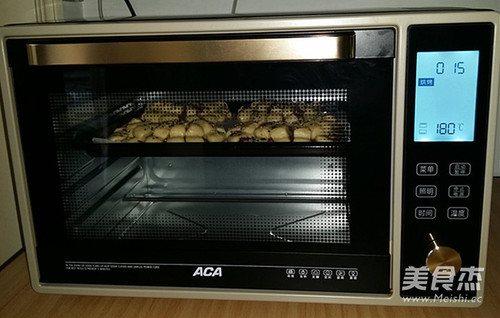 步骤15、送入预热好的烤箱中层:选择180度、下下火,烤15分钟左右