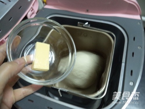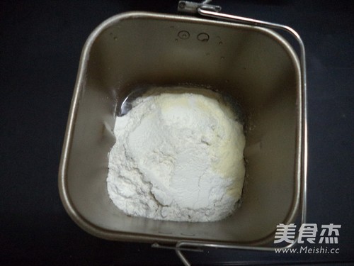 步骤1、将所有材料倒入面包桶内(黄油除外)