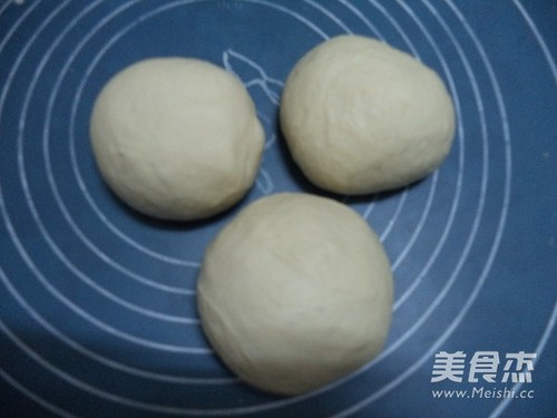 步骤8、再分成三份,滚圆盖保鲜膜松弛15分钟