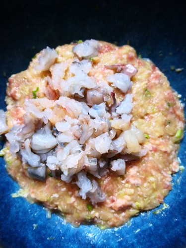 步骤8、虾仁切丁放入