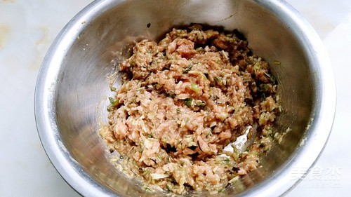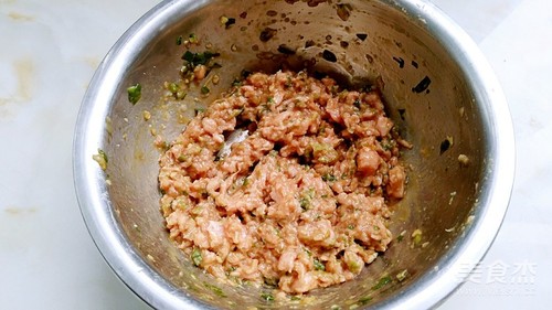步骤5、把茄子搅打进肉糜中拌匀。