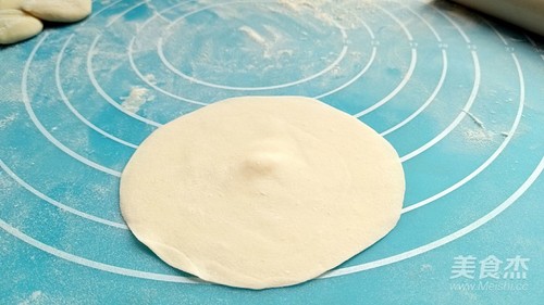 步骤7、把剂子擀成较薄的皮子,比饺子皮还要薄。