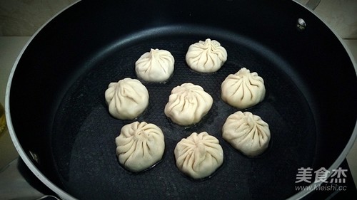 步骤12、摆放包子,小火煎。