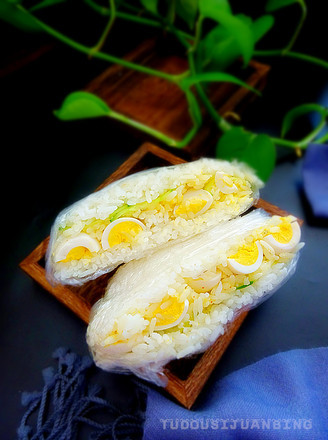 步骤11、用保鲜膜包住,然后就可以对半切开,吃吧,又香又方便,谁看谁喜欢