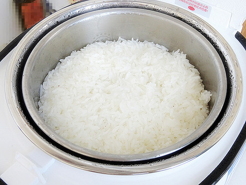 步骤2、米饭煮熟,煮米饭的时候可以适当放一把糯米,这样能增加米饭的粘度