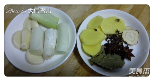 步骤1、葱洗净切段,姜洗净切片,蒜扒皮,其他料准备好,待用。