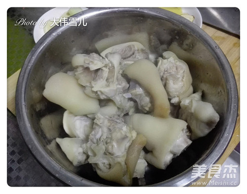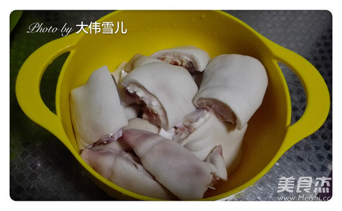 步骤2、猪蹄洗净切成大块,我是在超市里让人家就给切好了。