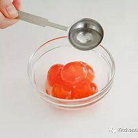 步骤6、 烤箱180℃预热15分钟;在咸蛋黄上淋上白酒,浸泡2分钟,去除腥味