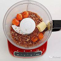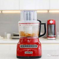 步骤8、 制作肉松蛋黄:9杯食物料理机,安装上面团刀,将蛋黄、黄油、肉松加入工作碗中,开启功能键1档,搅拌约1分钟