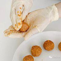 步骤7、 把咸蛋黄放进烤盘,烤箱烘烤约2分钟,把咸蛋黄烤至8成熟,取出备用