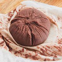 步骤12、 把煮好的红豆倒入不锈钢漏网中,用手持打蛋器不停的搅拌,过滤出细沙,放入纱布袋,放入冰箱冷冻一晚