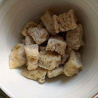 步骤4、 洗出的面筋加酵母粉活匀,发酵半小时,后放蒸锅蒸20分钟,出锅后放凉切块备用。