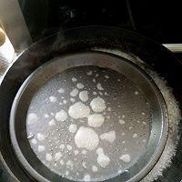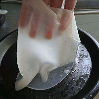 步骤5、 准备一个平盘,一盆凉水,烧开一锅水,平盘底抹油,倒一勺面糊在平盘,慢慢的均匀的摊开,放到热水锅里,盖锅盖蒸2-3分钟,看到起大泡就好了。