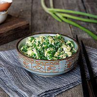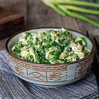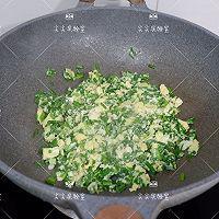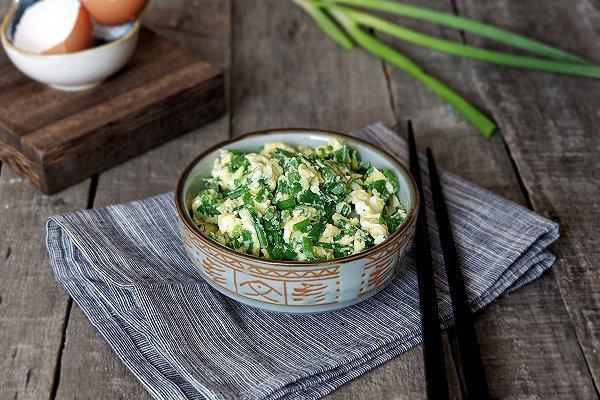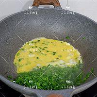 步骤6、 最后加少许盐,将鸡蛋和韭苔一起翻炒均匀即可