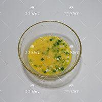 步骤3、 鸡蛋加一点盐打散成蛋液,加入葱花拌匀。