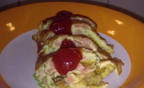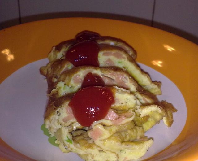 步骤6、放一点番茄酱。 。好吧。其实我是想做鸡蛋卷的。。