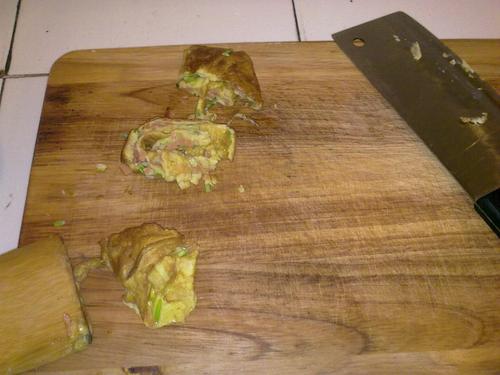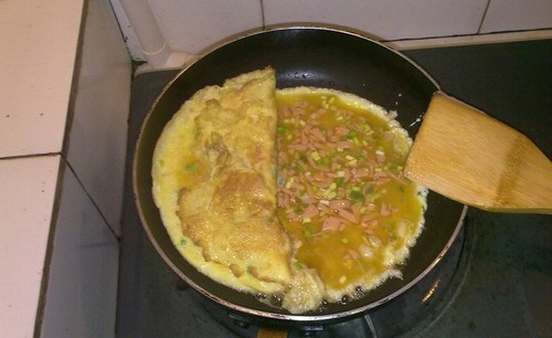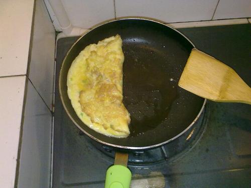 步骤2、平底锅,起火,下油 下一小半的蛋液