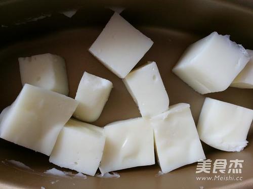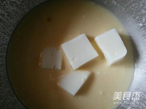 步骤8、奶块放入面糊中裹一层