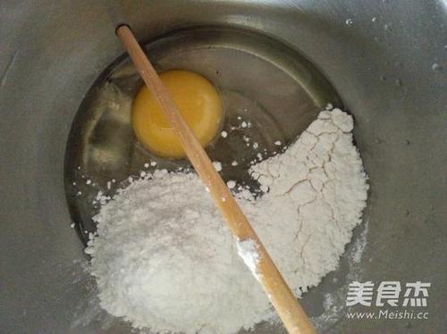 步骤7、面粉、鸡蛋加入水搅拌成面糊